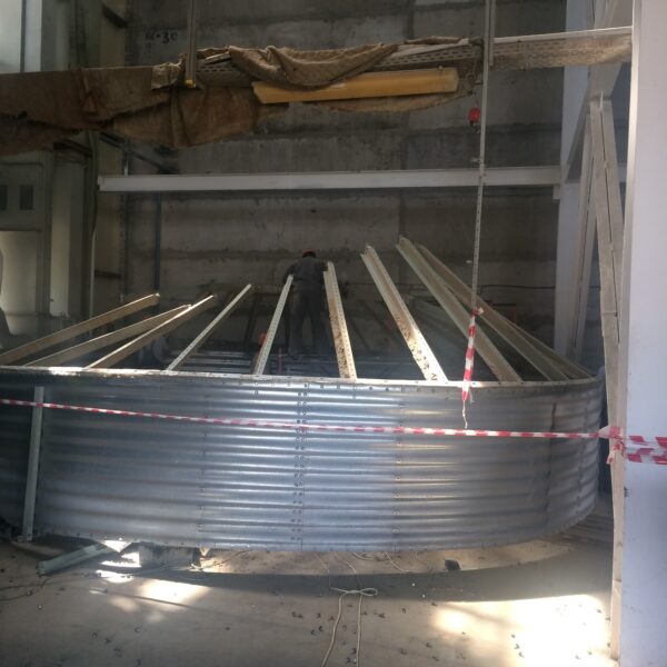 Проведение демонтажных и монтажных работ самотечного оборудования на приемо-очистительная башни Проведение ремонтаных работ наполльного покрытия емкостей для хранения зерна №12,